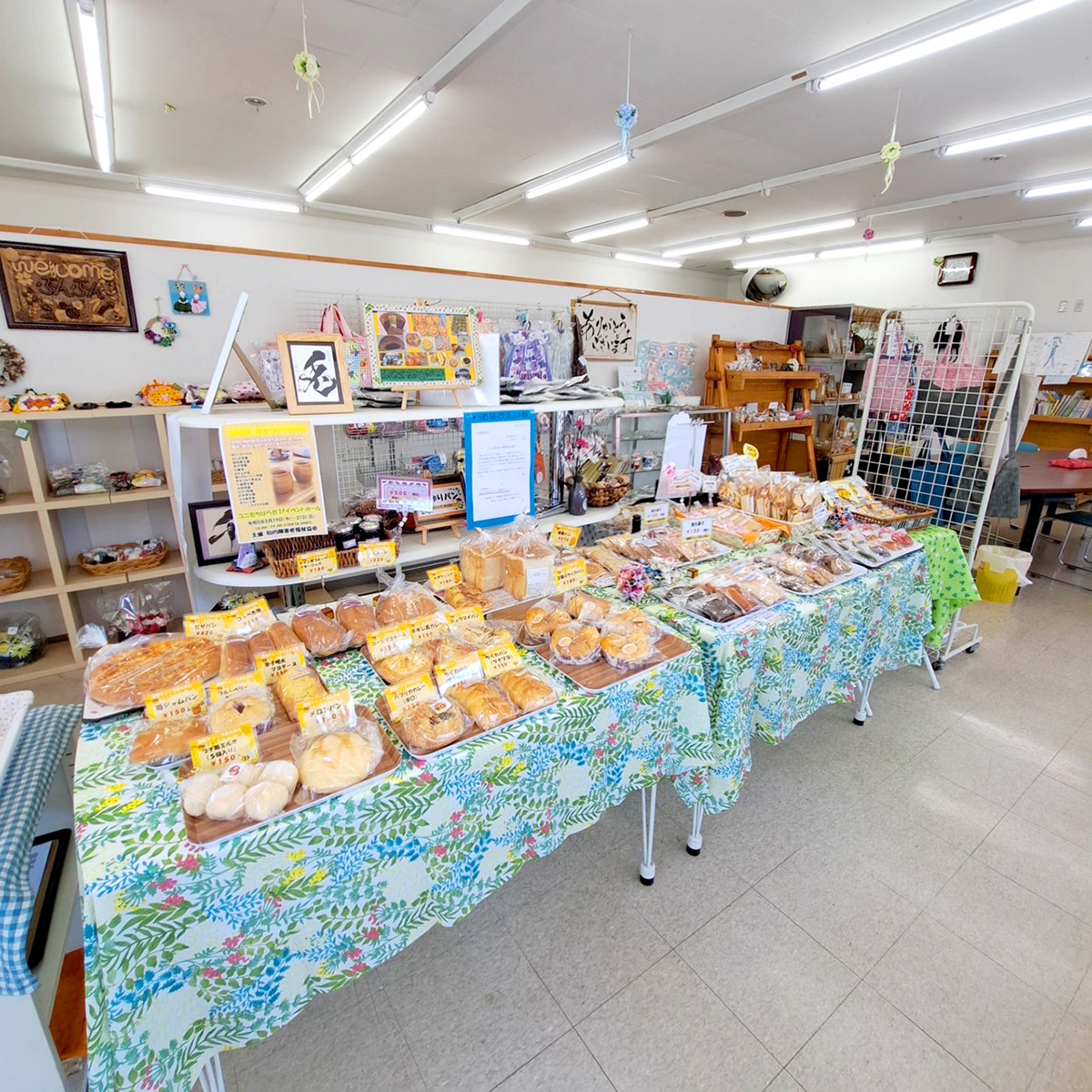 地域の方が気軽に立ち寄れる憩いの場となるよう運営しています。 主によつば工房のパンや焼き菓子、各作業班の野菜、果物、花、手芸品の他、地域の生産者さんの野菜、花、卵、菓子、雑貨、作家さんの作品の販売を行っています。 教室や講座の開催、貸出スペースもございます。是非、ご利用下さい。